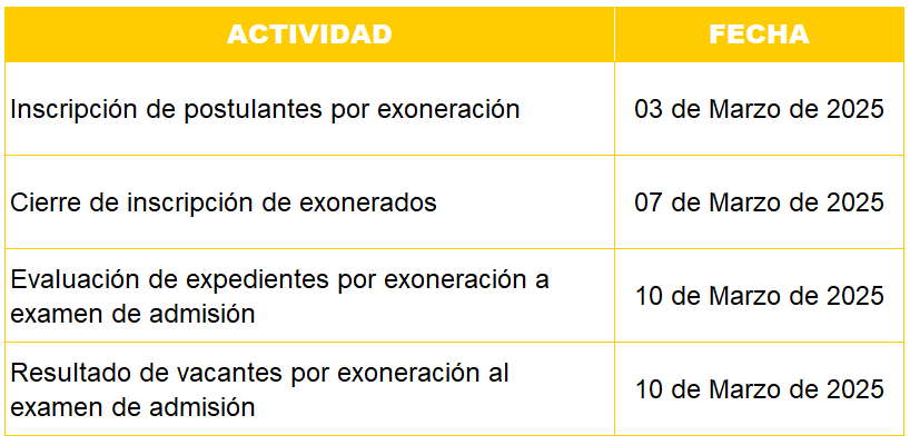 CRONOGRAMA PARA EXONERADOS AL EXAMEN DE ADMISIÓN