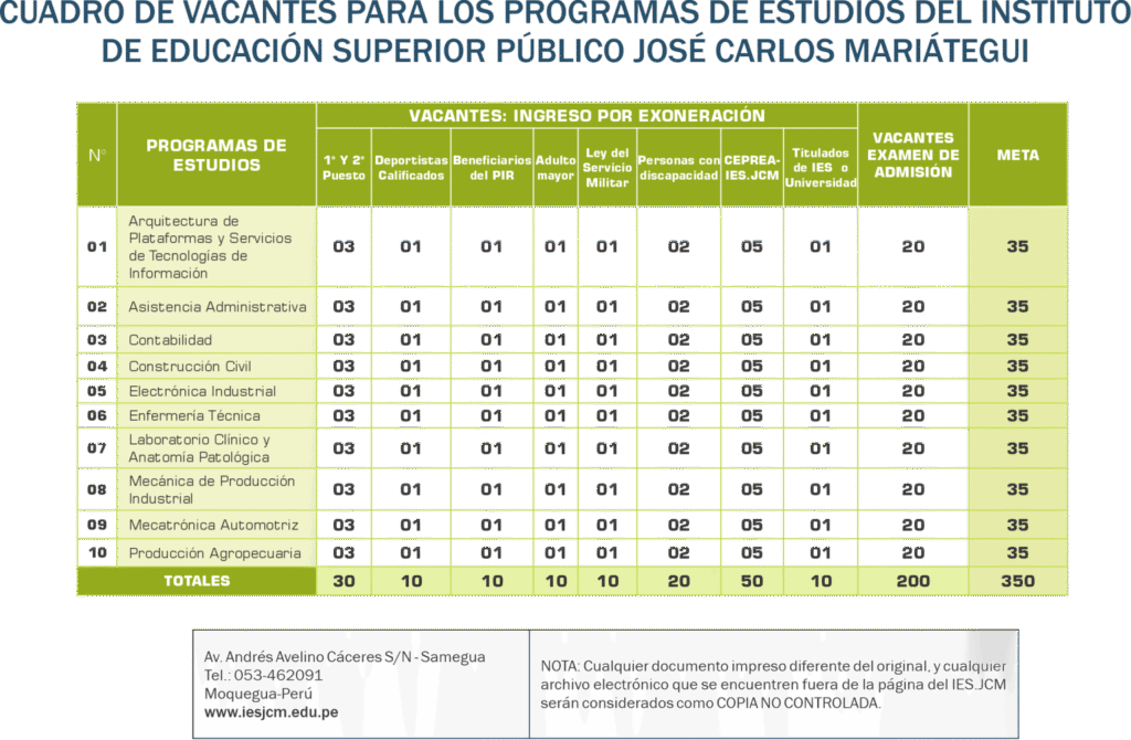 Dirigido a los 05 primeros puestos de cada programa de estudios del Centro de Preparación Académica del IES. José Carlos Mariátegui.
